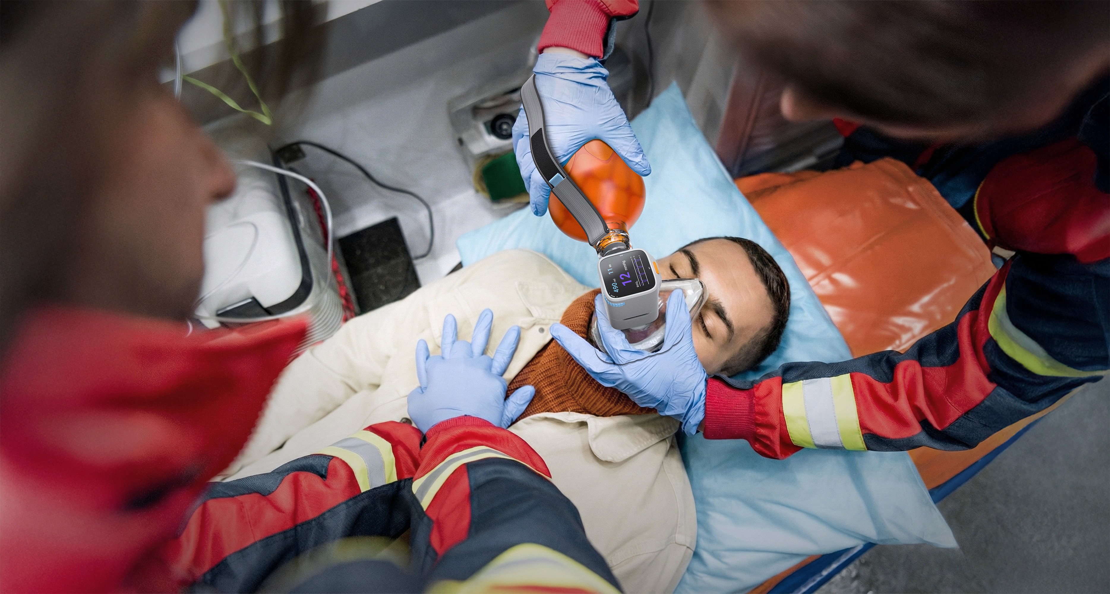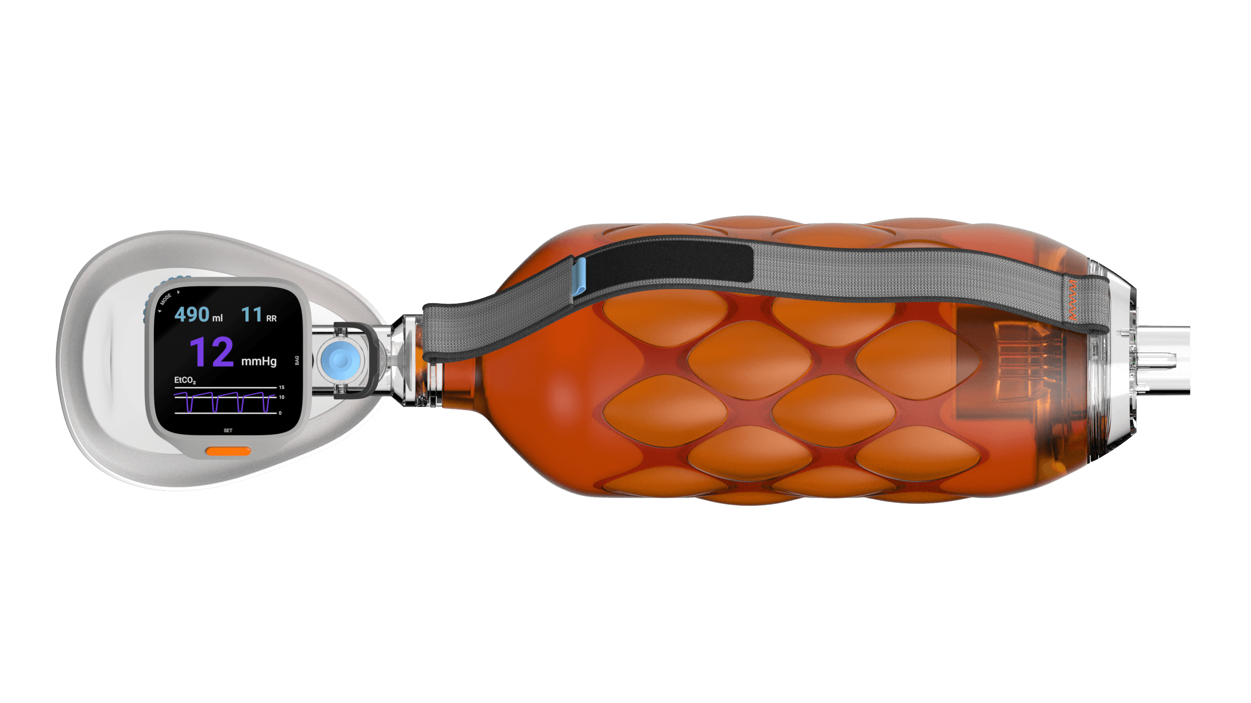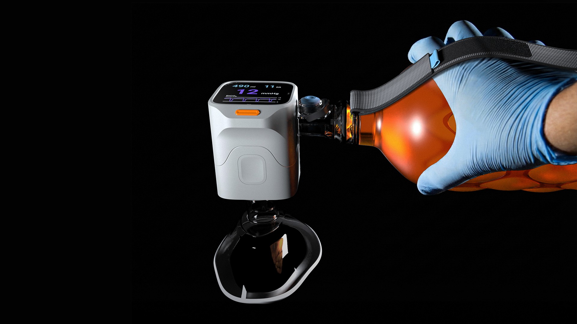 Todays ventilation bags require stacking separate sensors and valves into a clunky tower, to get us much feedback as possible. On top of that forcing users to look away at distant monitors instead of keeping their eyes on the patient. This akward setup leads to paramedics avoiding to you these sensors.