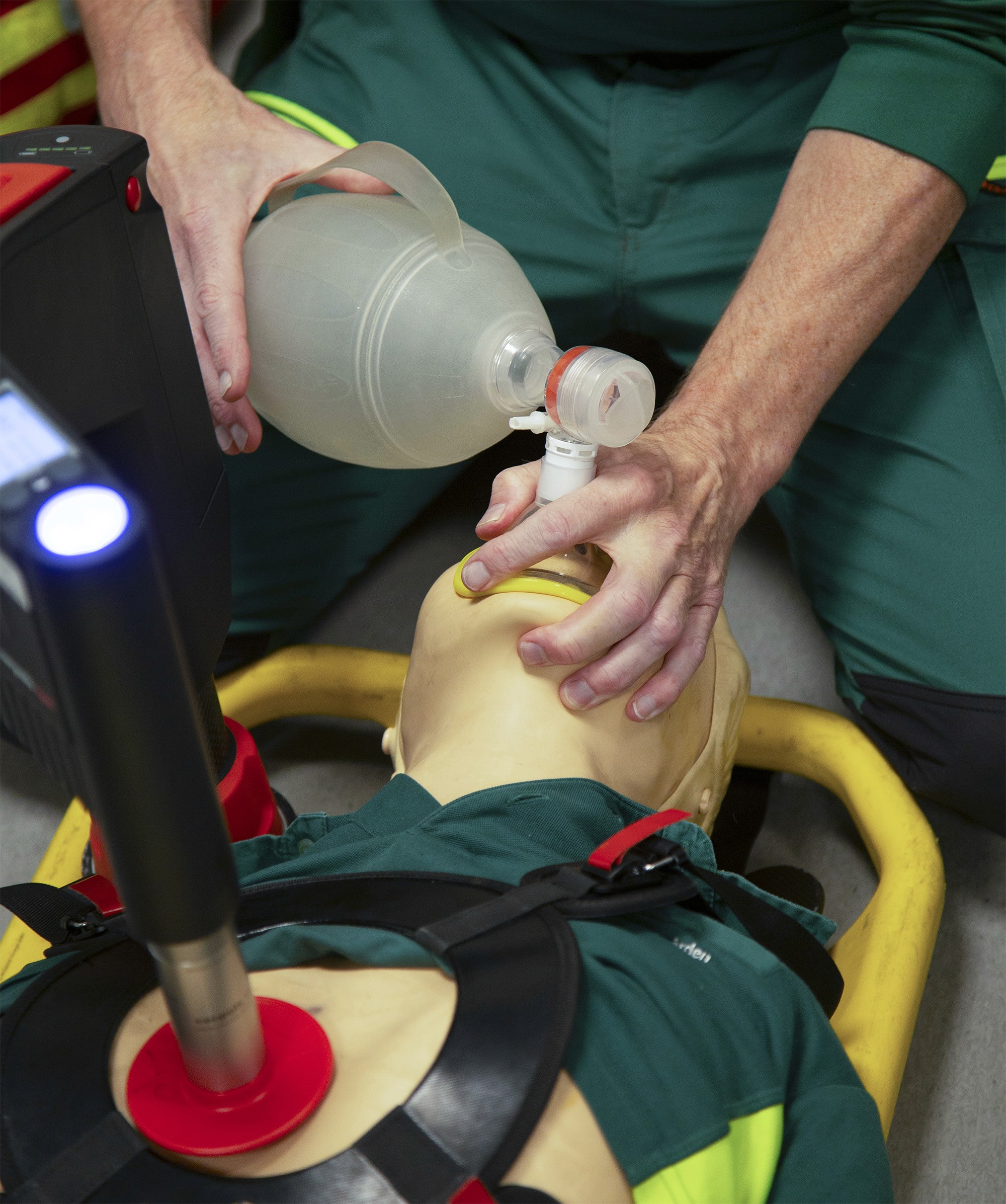 This project was deeply rooted in hands-on research and real-world context. The journey began with a CPR workshop hosted by Laerdal, setting the foundation for understanding manual ventilation. From there, immersive field trips with local paramedics, police academy, fire department and a search and rescue helicopter team provided invaluable insights into the diverse and chaotic environments where these emergencies happen. Translating these insights into physical prototypes was absolutely critical to test the ergonomics, refine the haptics, and ultimately validate the final design.
