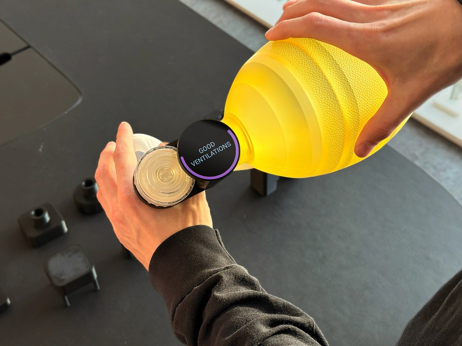 The two-component architecture enables seamless top-and-bottom attachment, ensuring a precise fit around existing valve systems. For quick removal, the design utilizes an intuitive snap-hook mechanism. By isolating the advanced electronics, this design supports a circular lifecycle for high-value parts and a flexible single-use or sterilization approach for the other bag components.