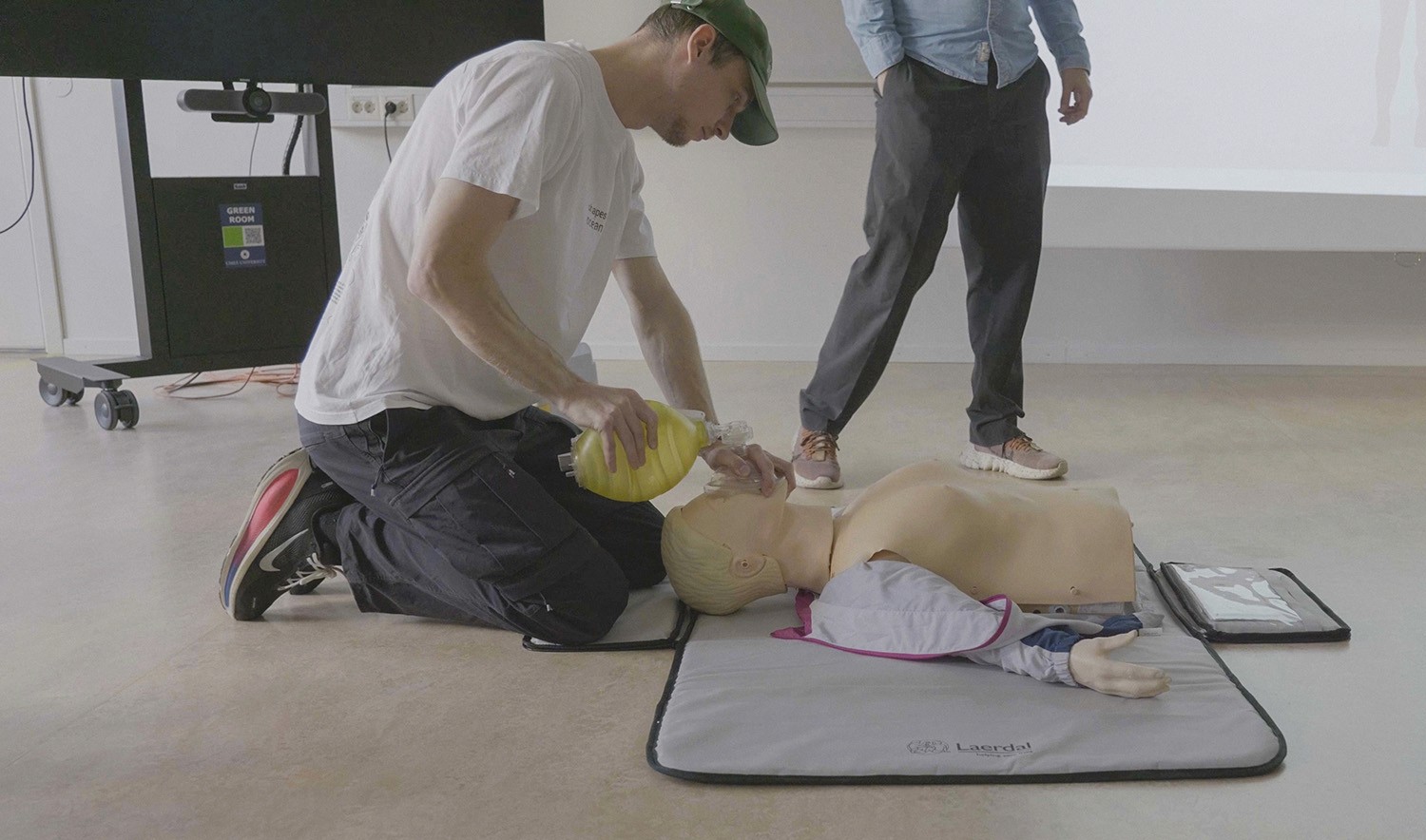 The project began with practical CPR training led by our cooperation partner, Laerdal. Experiencing a simulated emergency allowed me to physically interact with the current ventilation bag under pressure, leading to first-hand identification of the ergonomic and cognitive challenges that drive manual ventilation errors.