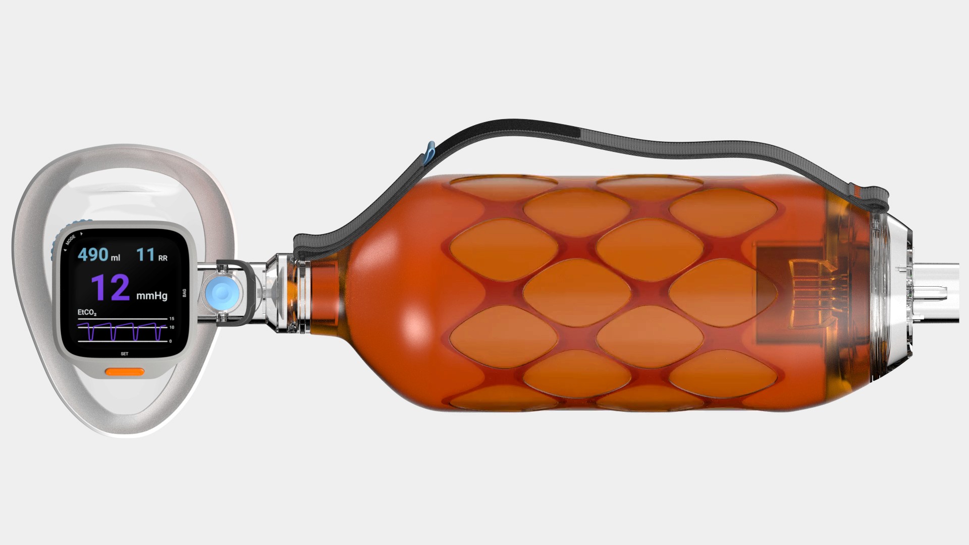 Todays ventilation bags require stacking separate sensors and valves into a clunky tower, to get us much feedback as possible. On top of that forcing users to look away at distant monitors instead of keeping their eyes on the patient. This akward setup leads to paramedics avoiding to you these sensors. My design integrates everything into one sleek housing with a built-in display, drastically improving ergonomicsand accessibility which allows keeping the rescuer’s focus exactly where it belongs: on the patient.