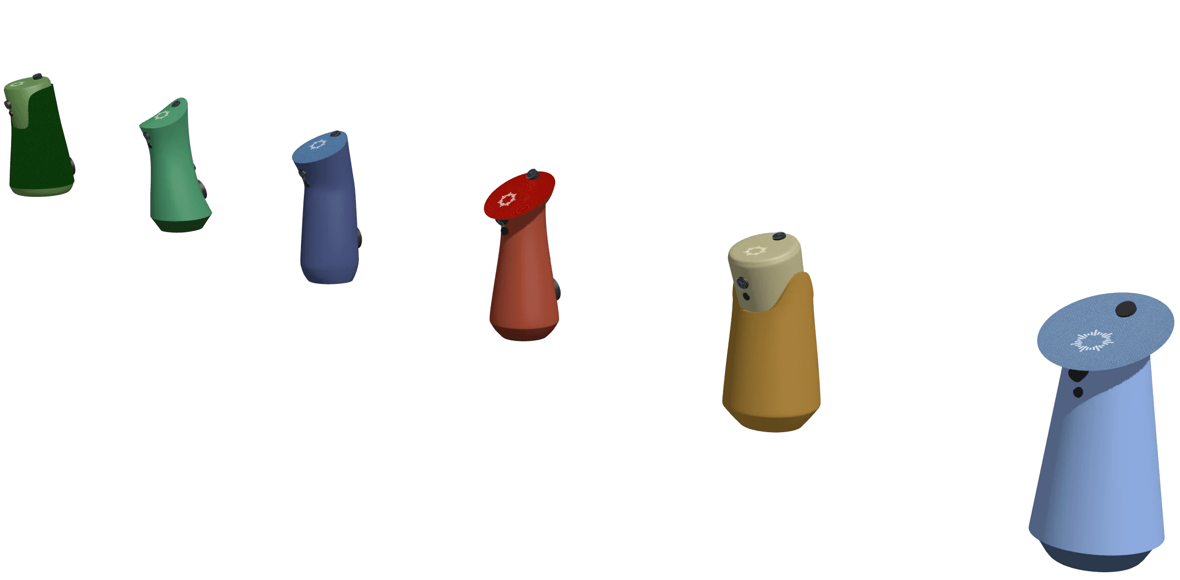 Spark is designed to be friendly and approachable but without appearing like a toy. Its shape and size invite interaction, whether children are carrying it in their arms or tapping its head to wake it up.