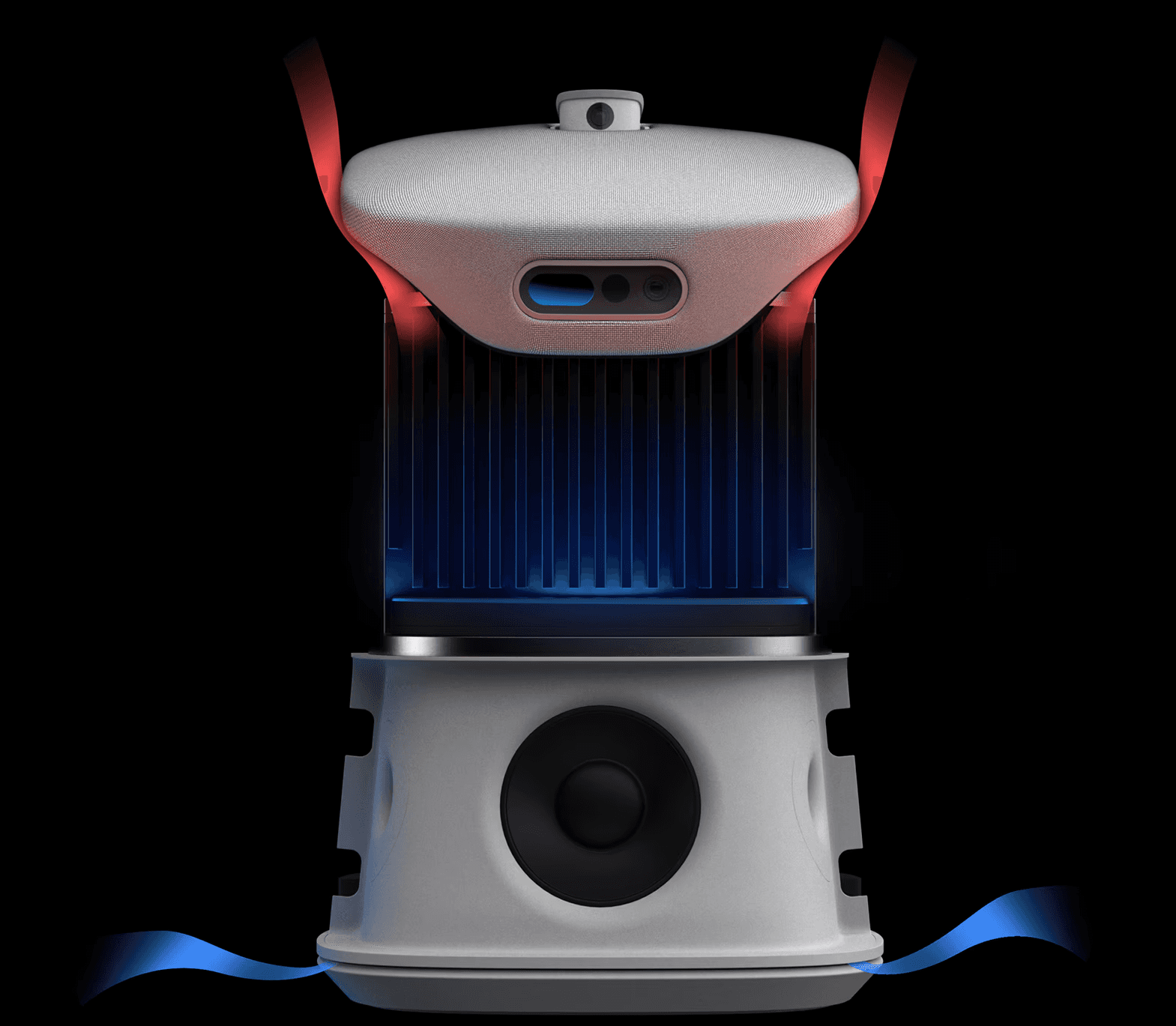 Spark is designed with cooling in mind. The raised air inlet on the lower chamfer allows it to be placed on a fluffy rug and still breath in fresh air, a major aspect of a functional projector.